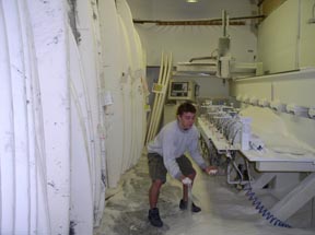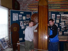 Chinn & Brenner Inside the Surf Museum with one of the first boards. |