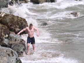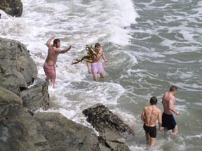 Falk, Dennis, Luke and Tsirtsis brave the waters. |